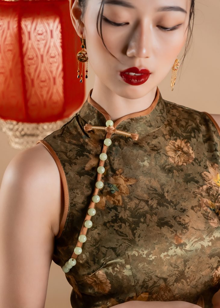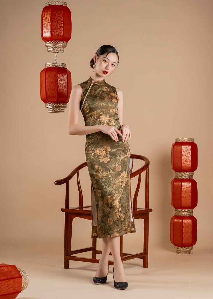Veil of Sepia Blossoms Maxi Qipao